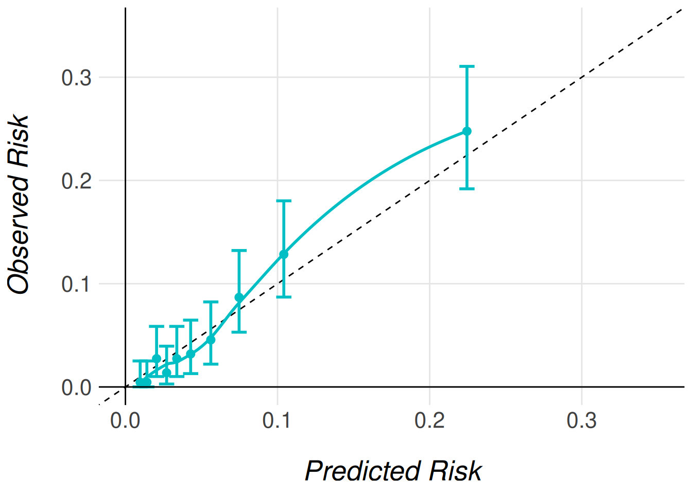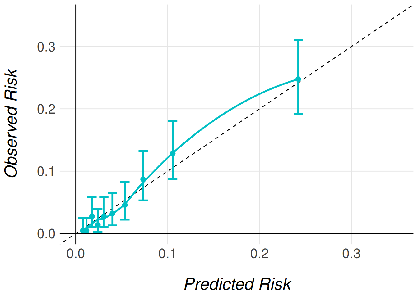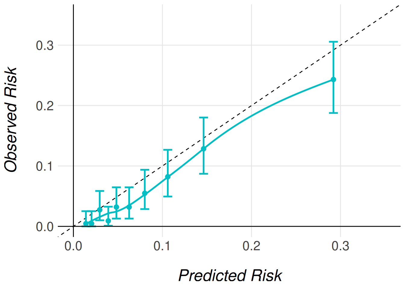 MiceExtVal::get_stratified_calibration_plot_surv()for estimating risks using a Kaplan–Meier approach (typically for survival data).